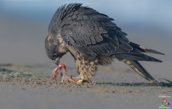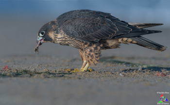 Well, there are several reasons I prefer this beach for – firstly, it is easily accessible from the parking lot, yet never crowded during early morning, when there is a good chance of finding the Peregrine juveniles down on the beach rather than high on the cliffs. In fact, on many occasions I found them eating their breakfast on the beach. From a photographer’s perspective, it is a relatively unique scene to capture, all the while enjoying the tranquility of nature in a deserted beach. I also happen to prefer low angle, eye-level photography, and the sandy beach easily provides me that opportunity as well.